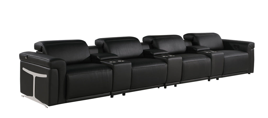 Indulge in luxury with the Global United 1126 7PC Power Reclining Italian Leather Sofa by Divanitalia. Crafted to perfection, this sofa offers unrivaled comfort with plush high-density seat cushions and integrated lumbar support. With ample seating for four, this sofa features a durable Brazilian wood construction, genuine Italian leather upholstery, and a smooth dual power reclining mechanisms. With its elegant design and modern appeal, this sofa elevates any space and redefines luxury.