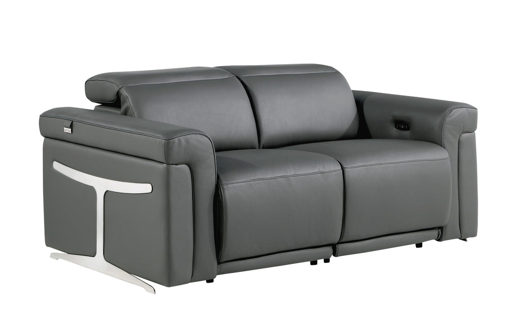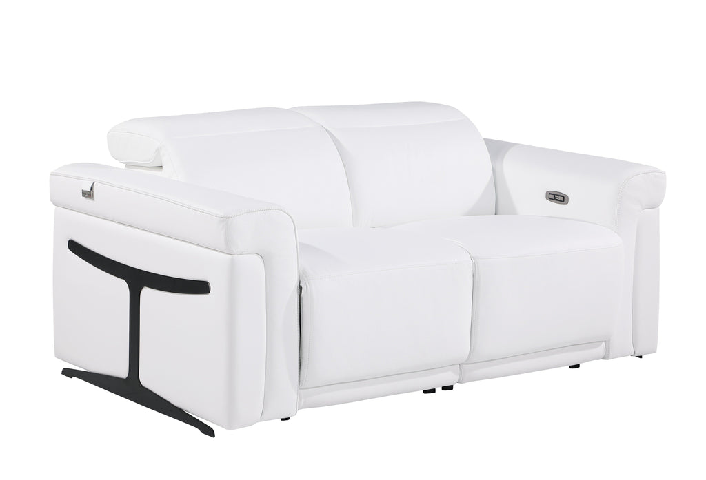 Indulge in luxury with the Global United 1126 Power Reclining Italian Leather Loveseat by Divanitalia. Crafted to perfection, this loveseat offers unrivaled comfort with plush high-density seat cushions and integrated lumbar support. This loveseat features a durable Brazilian wood construction, genuine Italian leather upholstery, and a smooth dual power reclining mechanisms. With its elegant design and modern appeal, this sofa elevates any space and redefines luxury.