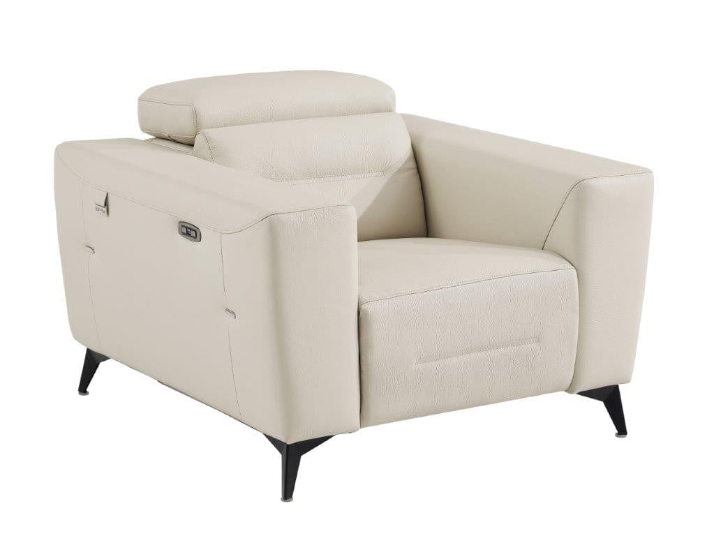 Experience comfort and sophistication with the Global United 989 Power Reclining Armchair by Divanitalia. This modern piece combines contemporary style with timeless elegance. Meticulously crafted with attention to detail, it's design features a sleek art deco-inspired silhouette and luxurious Top-Grain Italian Leather upholstery. Its elegant Jet black-finished stainless steel legs add a touch of modern sophistication. Combined with plush high density foam cushioning and its 2-way powered reclining seat and headrest, the 989 series provides the ultimate comfort and relaxation experience. Perfect for hosting movie nights or relaxing evenings, transform your entertainment space into a sanctuary of style and comfort with the 989 Armchair.
