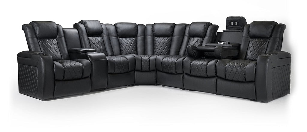What makes movie night a luxurious experience? Is it the wine, the cozy atmosphere, the supple feeling of leather as it supports your back as you recline your chair to better enjoy the movie experience? The Tuscany Multimedia Sectional can provide you a luxurious experience that will take movie night to the next level of comfort. With ample seating, the sectional will be the center of attention for all your guests and friends!