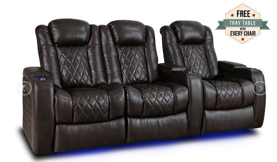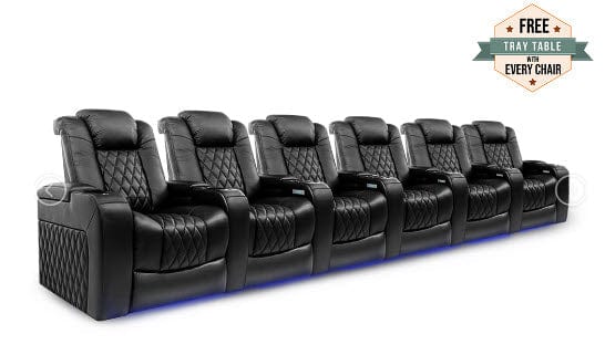 A unique combination of style, comfort, and luxury, the Tuscany makes it possible to get the most out of your movie nights with friends and family. With LED cup-holders, ambient base lighting, premium Italian top grain Nappa leather 11000 on all seating surfaces, and motorized recliner mechanisms, the Tuscany allows you to experience your home theater the way you have never experienced it before.