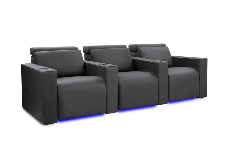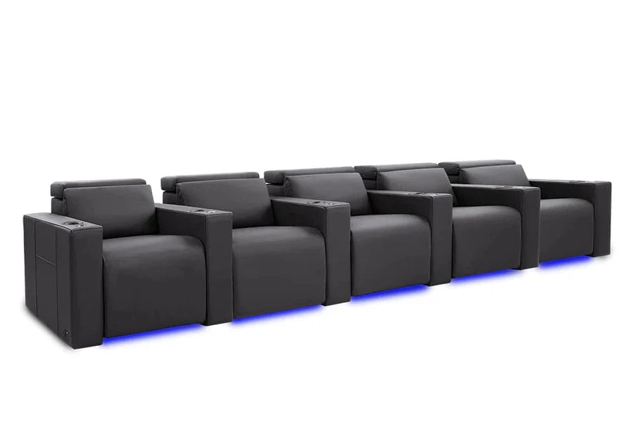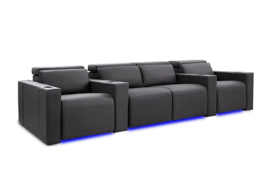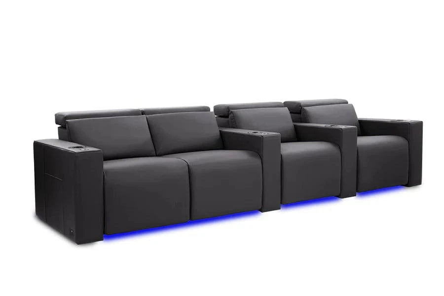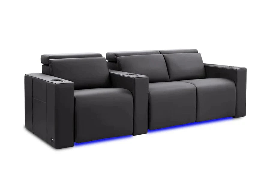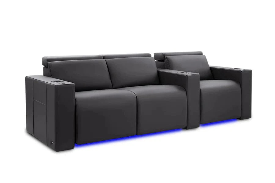 A unique combination of style, Barcelona makes it possible to get the most out of your movie nights with friends and family. With LED cup-holders, ambient base lighting, premium Italian top grain Nappa leather 11000 on all seating surfaces.